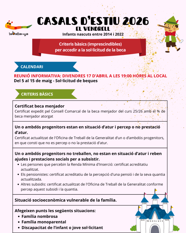 Cal fer la inscripció prèviament a algun dels Casals de La Ballaruga i després es podrà fer la sol·licitud de beca.